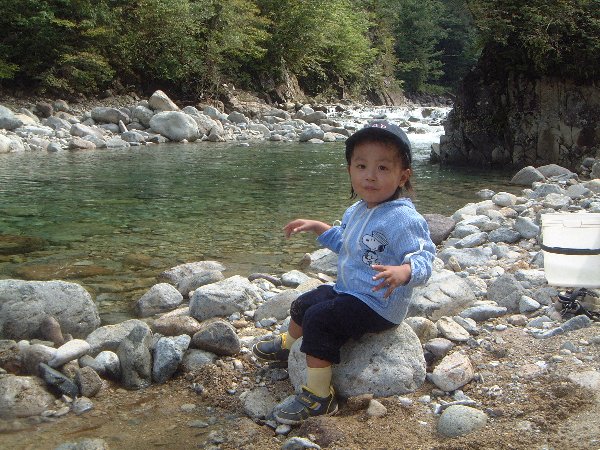 ヤマメを7匹ほど釣って誠也に遊ばせてあげた。