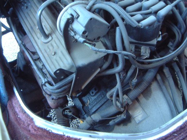 シェビーバンは、足元にV8エンジンが住んでたりする。 空けてみたらオイル漏れ三昧である。 見なかったことにしよう。