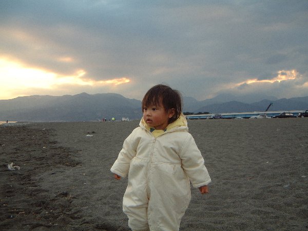 誠也を連れて大磯で、この砂浜は小田原付近なのだが