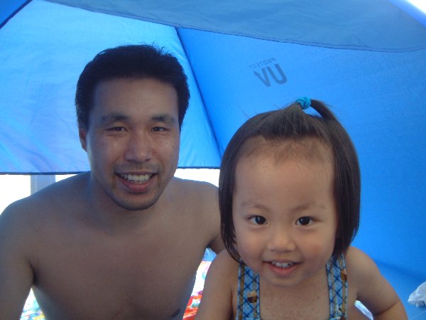 あまりに暑いので、ベランダにプールなんぞ出してみました。