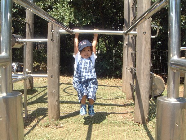 ママの美容院のお付き合いで大井町まできてみました。 美容院中は待ちなので 大井埠頭の公園まで、 鉄棒が気にいっておった。