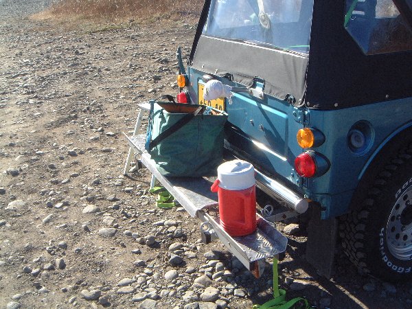 朝練に来ると変わった人が多いのでちょっと楽しい。 これは、ジムニーに後ろにバイク積載用のレールを付けている。 う〜ん。面白い!!!