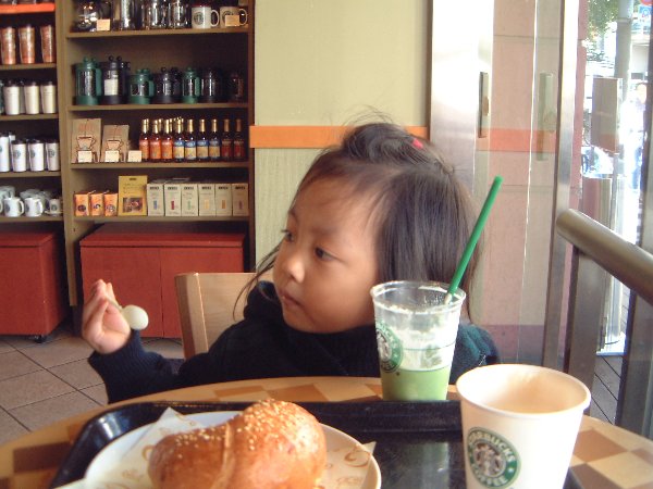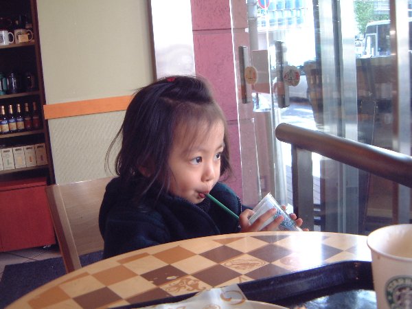 ともちゃんが歯医者に行っている間は、誠也と新宿のスタバで待機。 誠也は、クロワッサンと抹茶ラテがお気に入り。