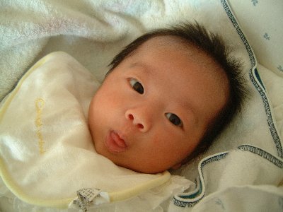 オデコのあたりはパパ似かな?いやいや目のあたりはママかも。