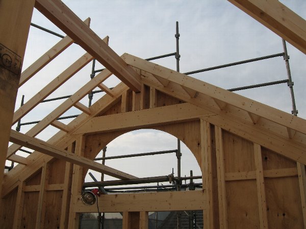 今度は屋根が付いてきました。 寝室のサークルウインドウはなかなか良かったかも・・・。
