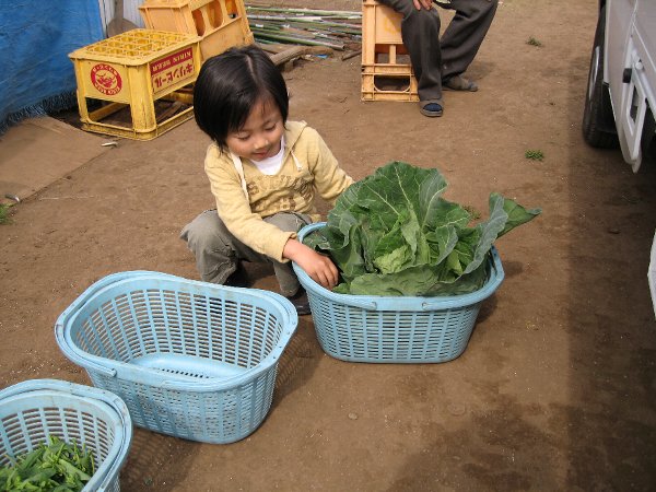 久しぶりの実家訪問。 おやじがすっかり爺さんになっていた。ビックリ。 誠也はキャベツの収穫に夢中。