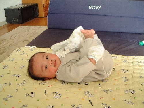 誠也くんは、最近めっきりタオル好き!1日中タオルと格闘してます